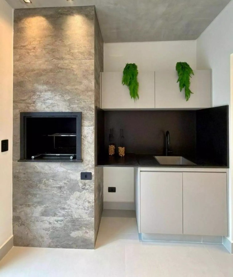 - Cozinha planejada integrada à área gourmet com churrasqueira