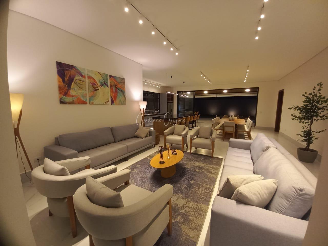 São 390 m² de área construída sobre um terreno de 730 m² no Condomínio Residencial Itaporã. que oferecem 3 salas integradas, ideais para entretenimento e convivência: home theater acolhedor, living social e lounge gourmet.