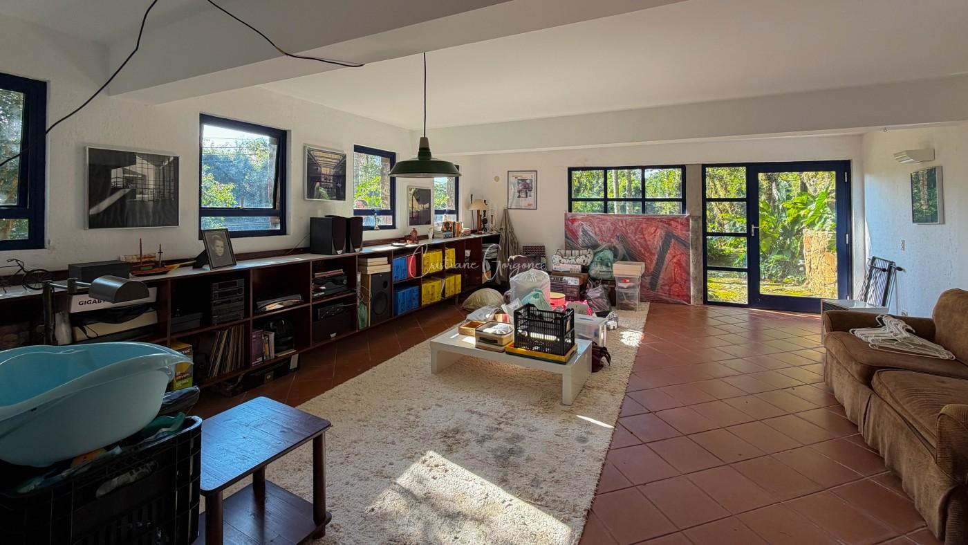 - Ampla sala com ambientes integrados: estar, jantar, TV e lareira