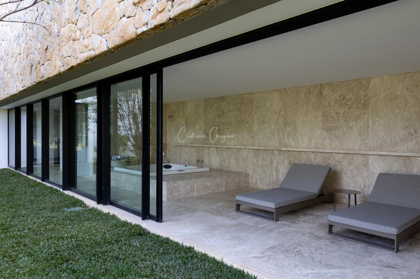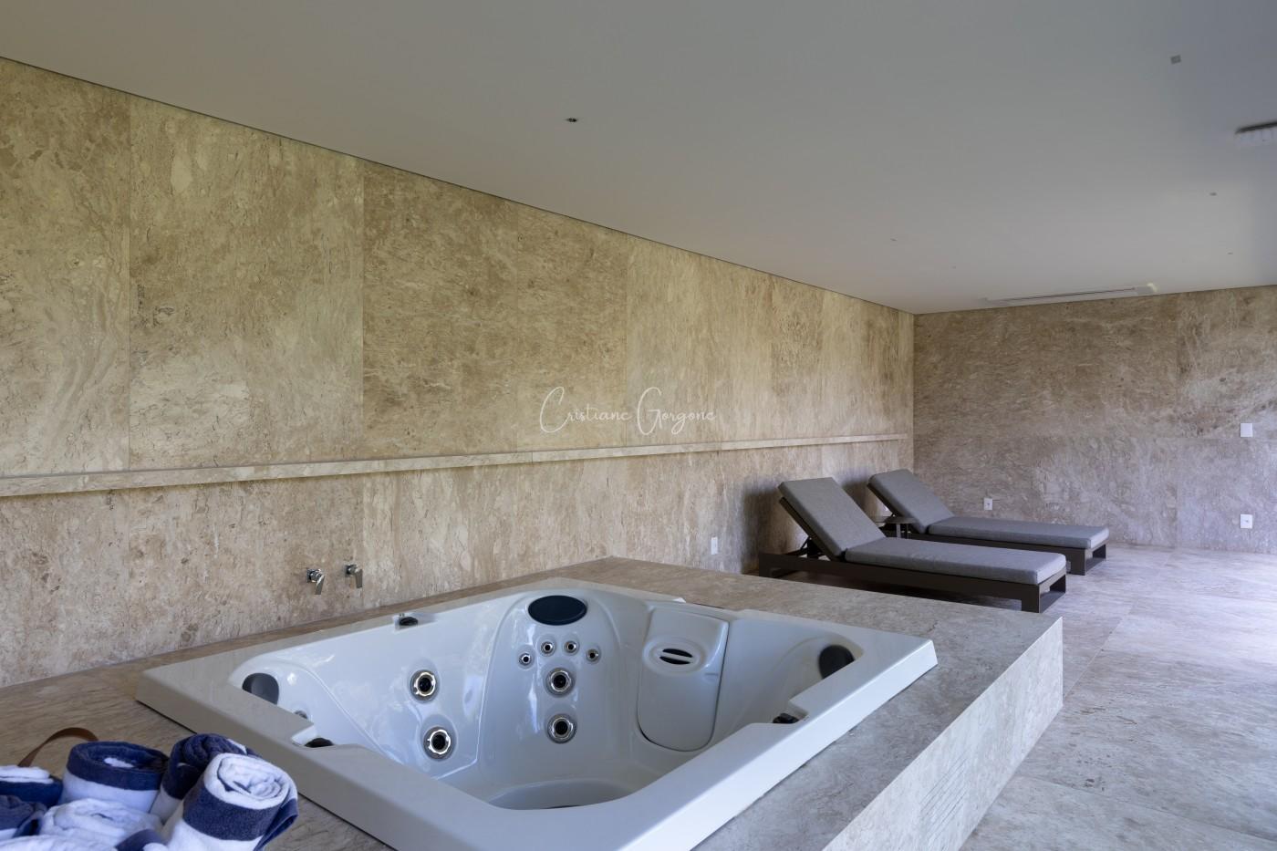 • Piscina com borda infinita, prainha e hidromassagem